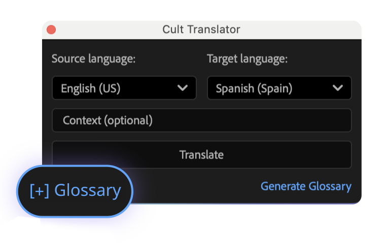Powered by GPT, Cult Translator uses context and glossary terms to choose the most accurate and natural translation for each line, reducing post-editing and human revision time.